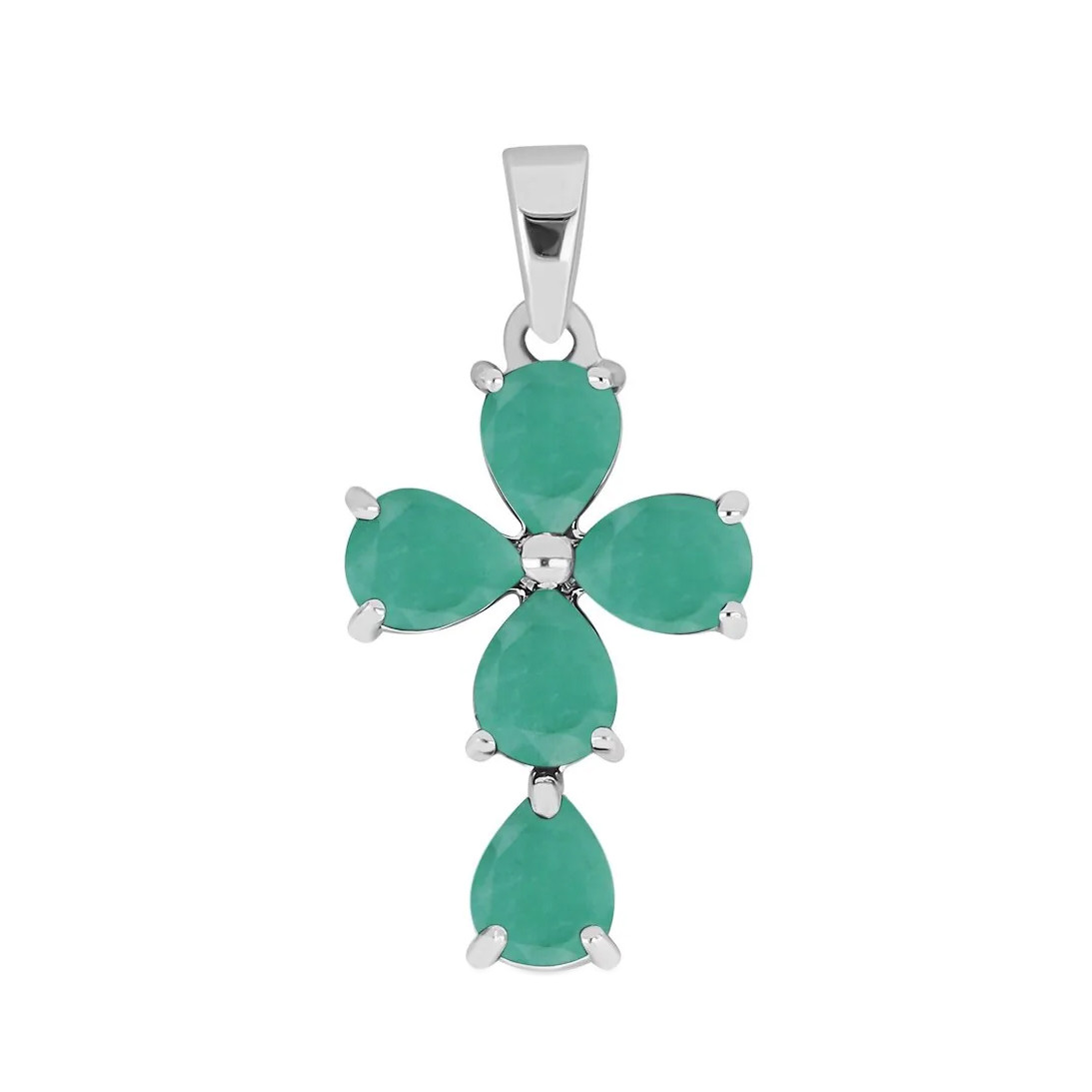 Крестик с изумрудом из серебра 925 пробы, с родиевым покрытием. Вставка: изумруд берилл