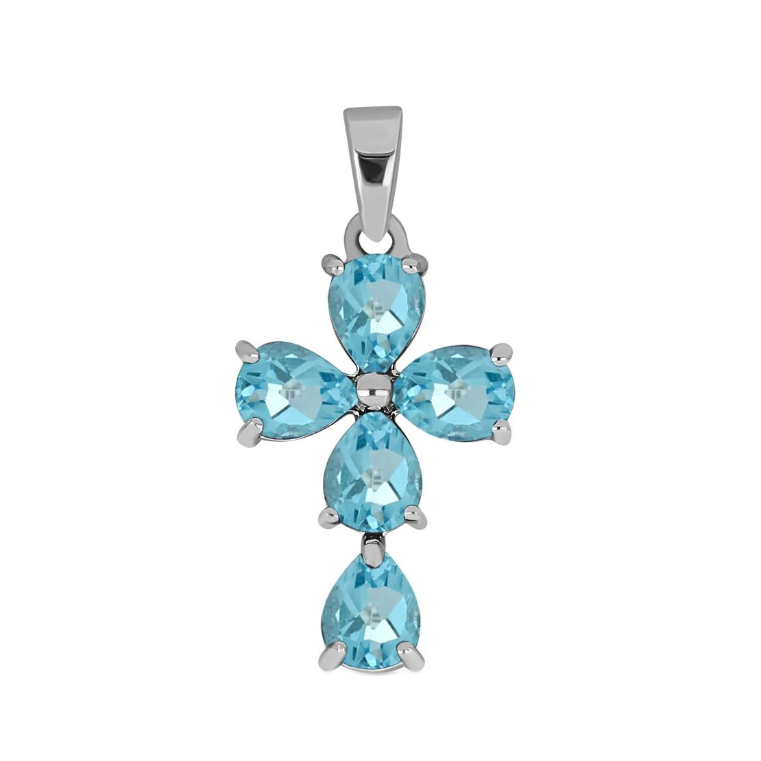 Купить стильный серебряный крестик с топазом в интернет-магазине Mirserebra925.ru. Оригинальный дизайн и аккуратное исполнение. Благодаря родиевому покрытию, изделие не темнеет со временем.