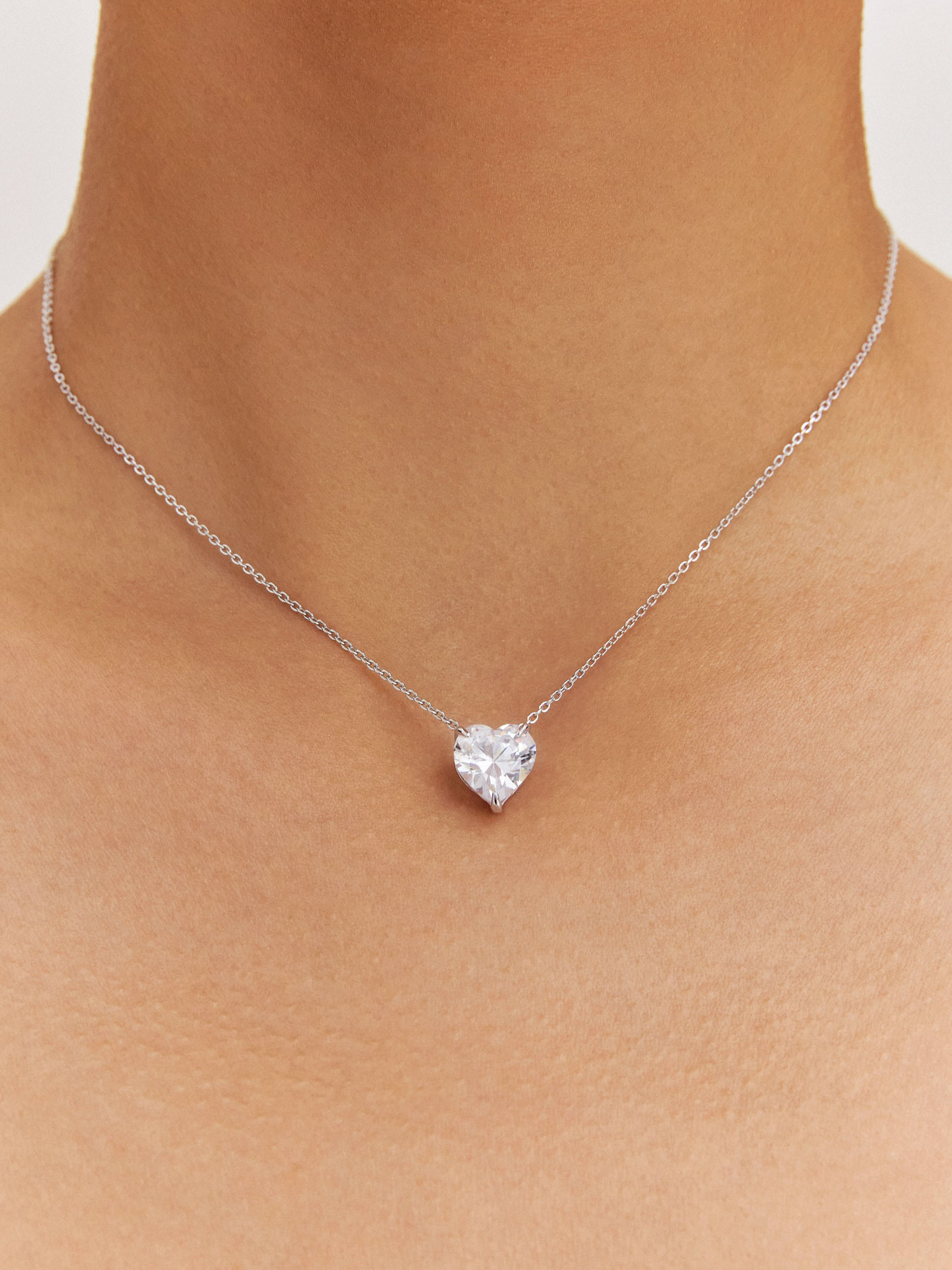Колье с цирконом из серебра 925 пробы, с родиевым покрытием. Вставка: куб. циркон.