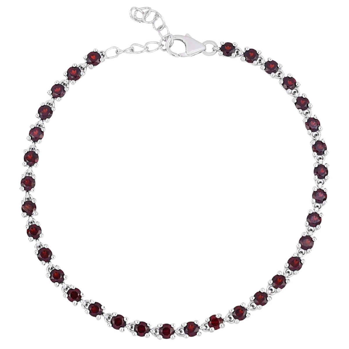 Браслет с гранатом из серебра 925 пробы, с родиевым покрытием. Вставка: гранат.