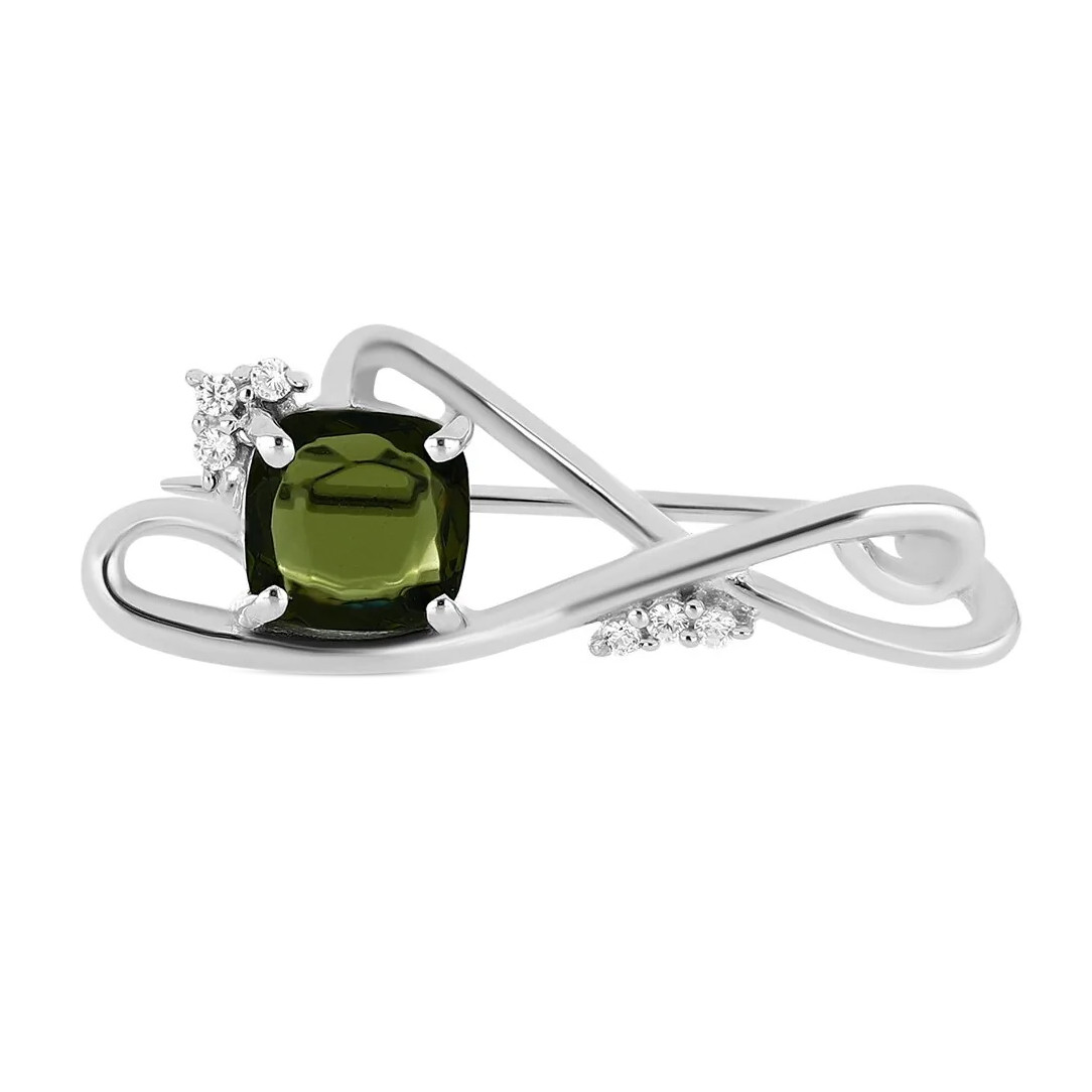Брошь с оливковой шпинелью из серебра 925 пробы. Вставка: оливковая шпинель, куб. циркон.