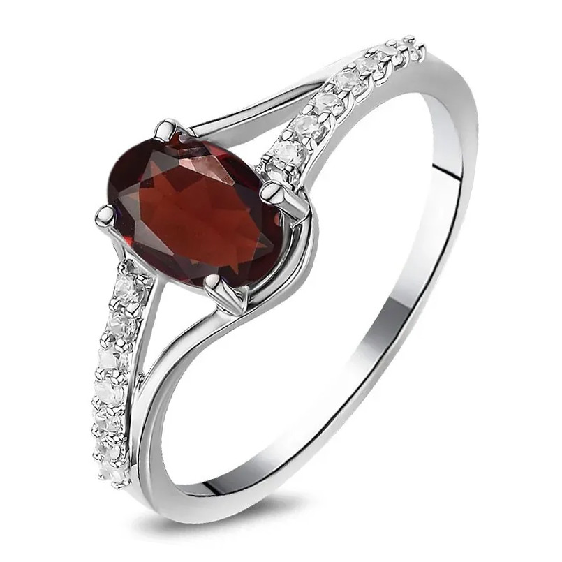 Кольцо с гранатом из серебра 925 пробы, с родиевым покрытием. Вставка: гранат, куб. циркон.