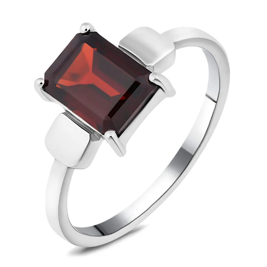 Кольцо с гранатом из серебра 925 пробы, с родиевым покрытием. Вставка: гранат.