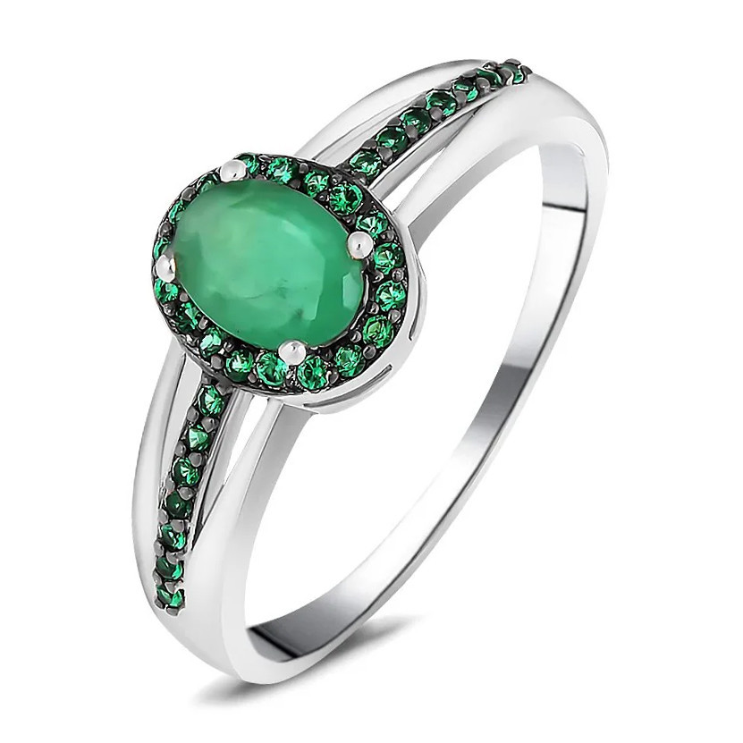 Кольцо с изумрудом из серебра 925 пробы, с родиевым покрытием. Вставка: изумруд берилл, наноизумруд.