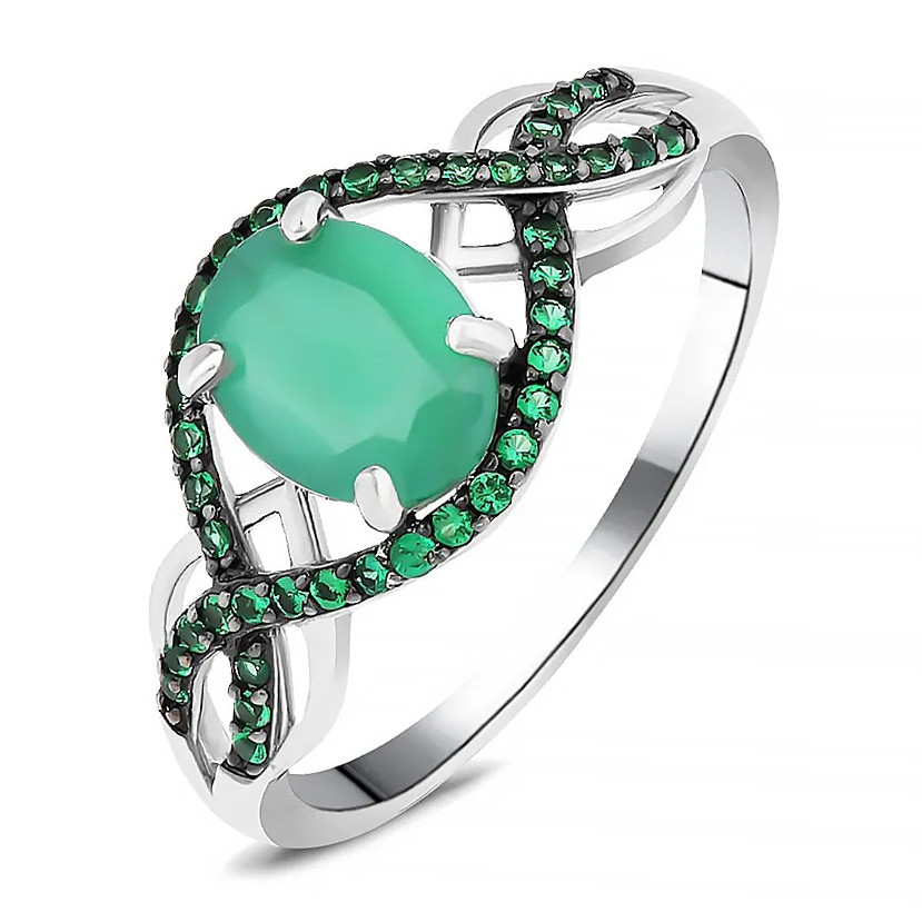 Кольцо с изумрудом из серебра 925 пробы, с родиевым покрытием. Вставка: изумруд берилл, наноизумруд.