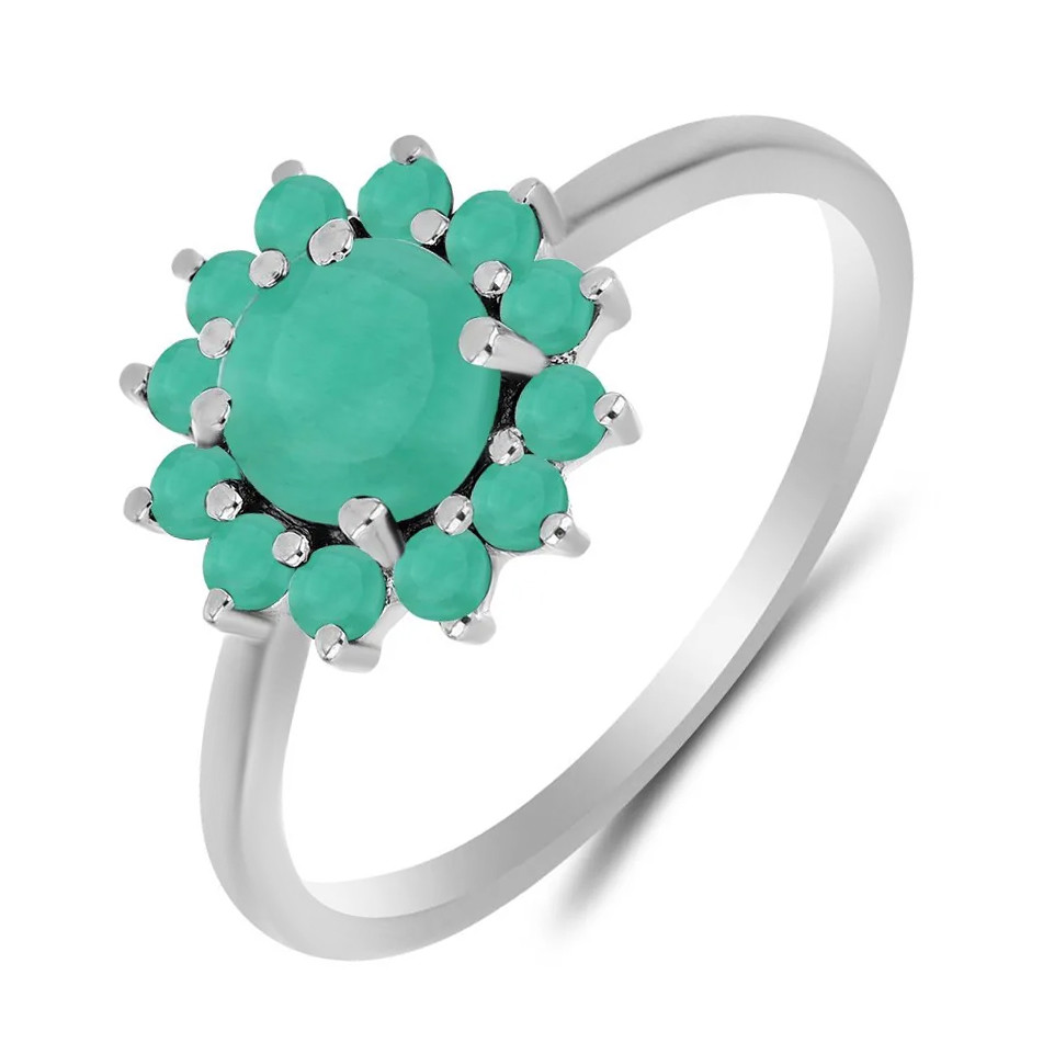 Кольцо с изумрудом из серебра 925 пробы, с родиевым покрытием. Вставка: изумруд берилл.