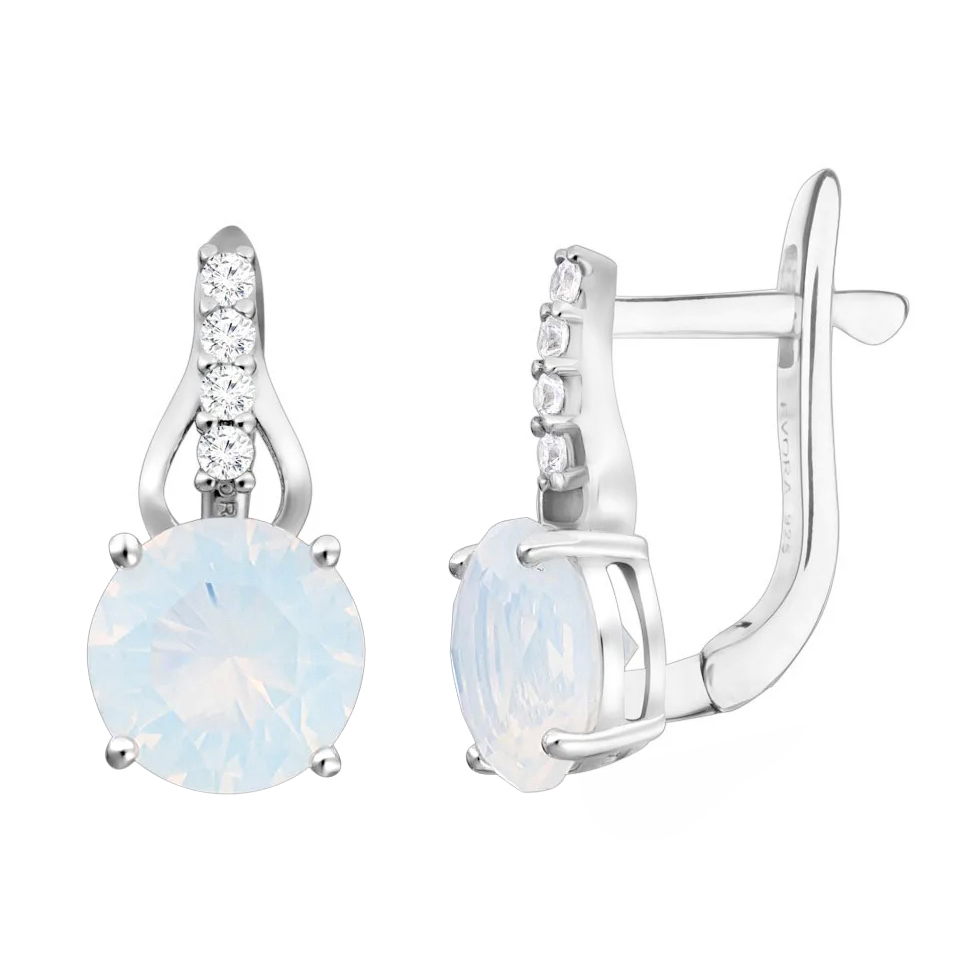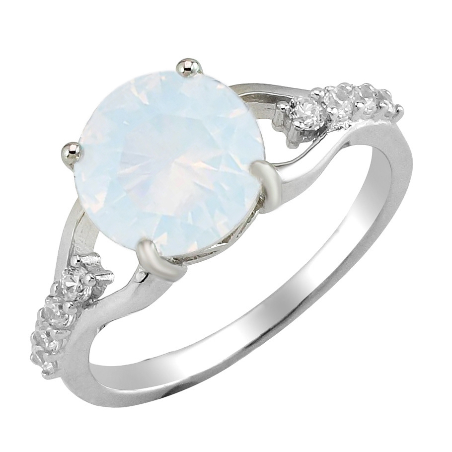 Кольцо с лунным камнем из серебра 925 пробы, с родиевым покрытием. Вставка: лунный камень, куб. циркон.