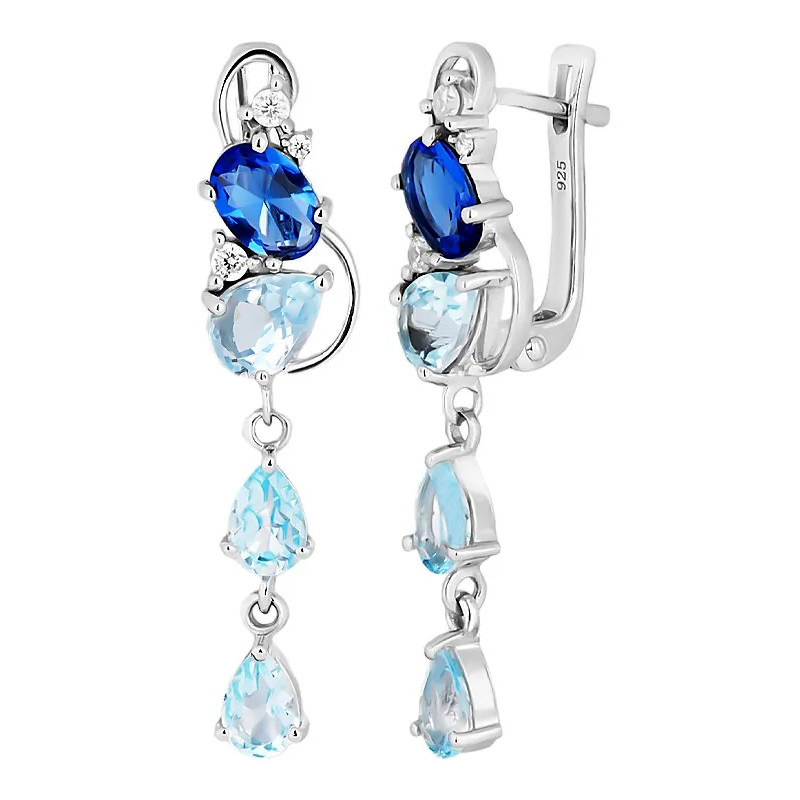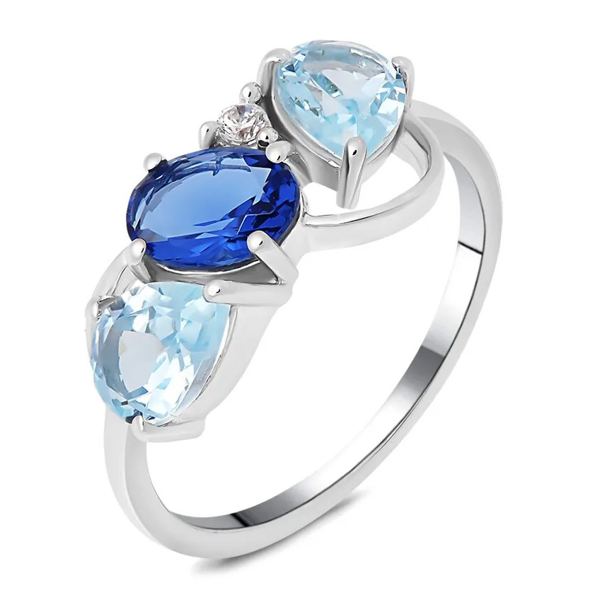 Кольцо микс камней из серебра 925 пробы, с родиевым покрытием. Вставка: танзанит выращ., топаз