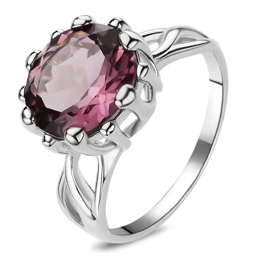 Кольцо с родолитом из серебра 925 пробы, с родиевым покрытием. Вставка: родолит синт.