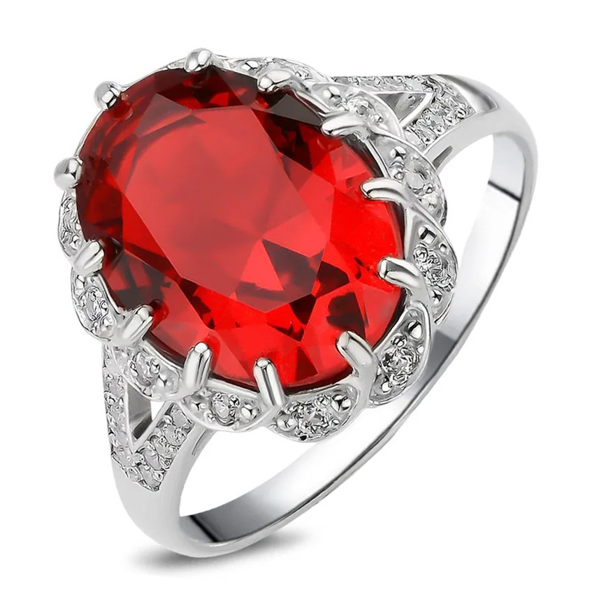 Кольцо с рубином из серебра 925 пробы, с родиевым покрытием. Вставка: рубин синт, куб. циркон.