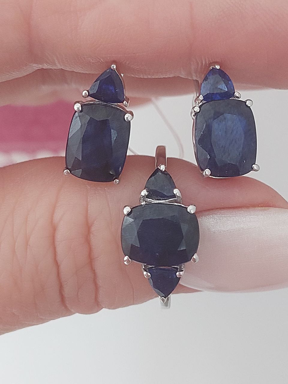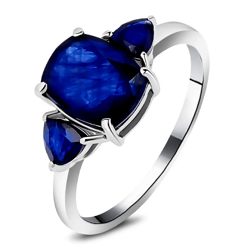 Кольцо 1 сапфир кушон 7х9 мм/2.87 ct., 2 сапфир триллион 4 мм/0.68 ct из серебра Арт: 658395