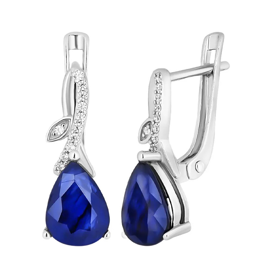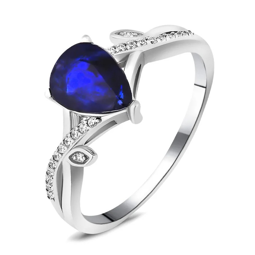 Кольцо с сапфиром из серебра 925 пробы, с родиевым покрытием. Вставка: сапфир корунд, куб. циркон.