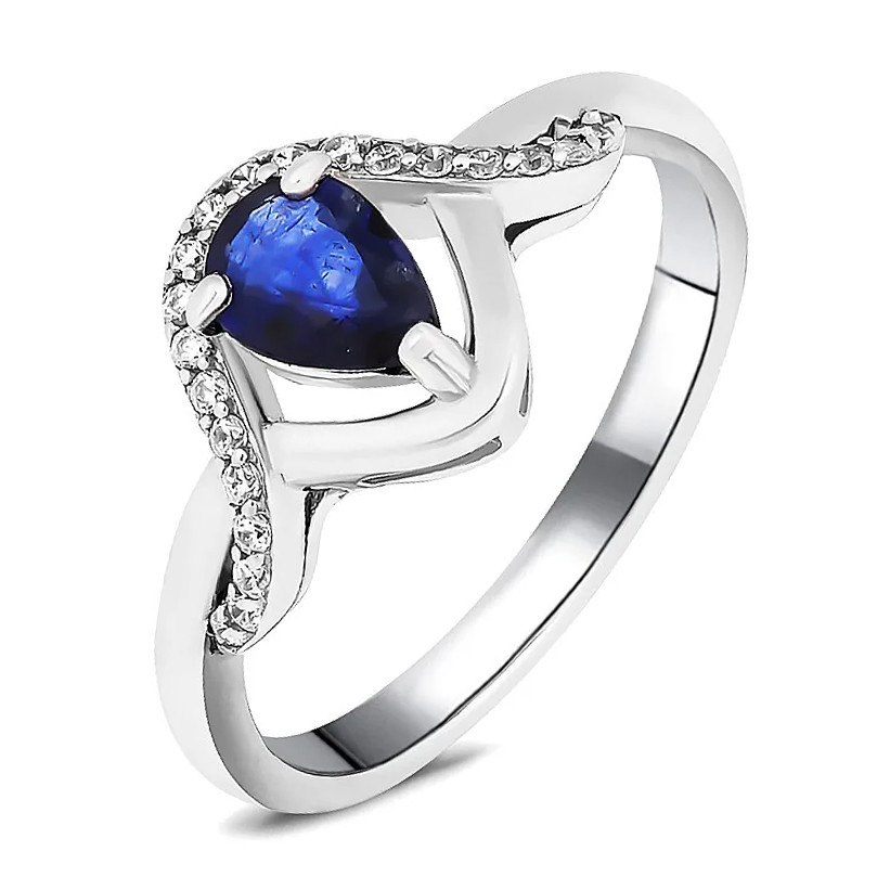 Кольцо с сапфиром из серебра 925 пробы, с родиевым покрытием. Вставка: сапфир корунд, куб. циркон.
