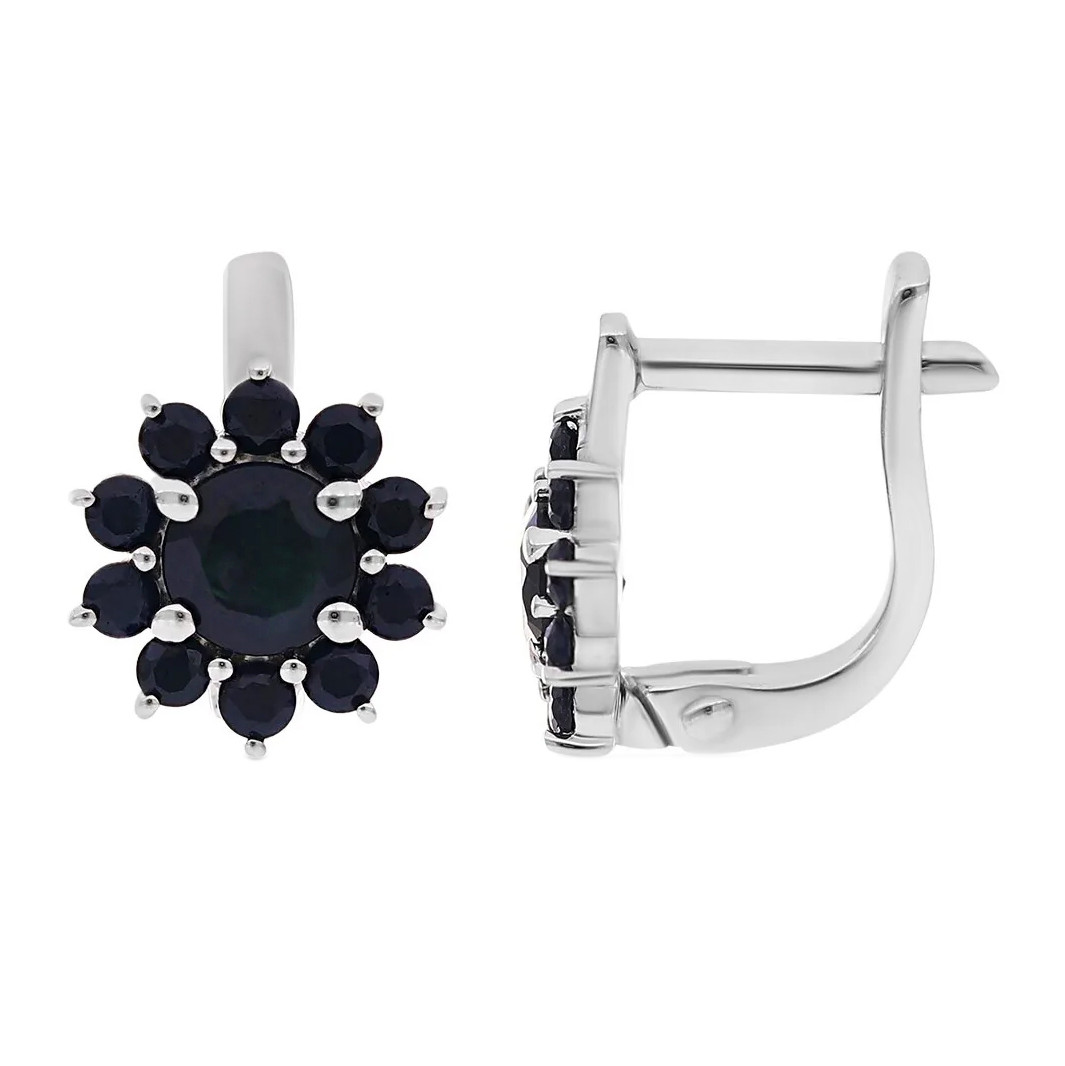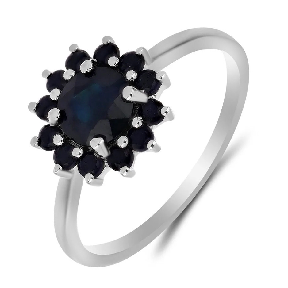 Кольцо с сапфиром из серебра 925 пробы, с родиевым покрытием. Вставка: сапфир корунд.