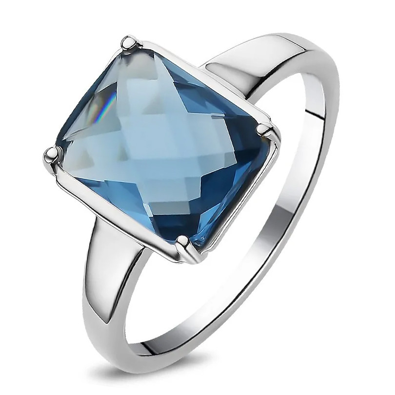 Кольцо с танзанитом из серебра 925 пробы, с родиевым покрытием. Вставка: танзанит выращ.