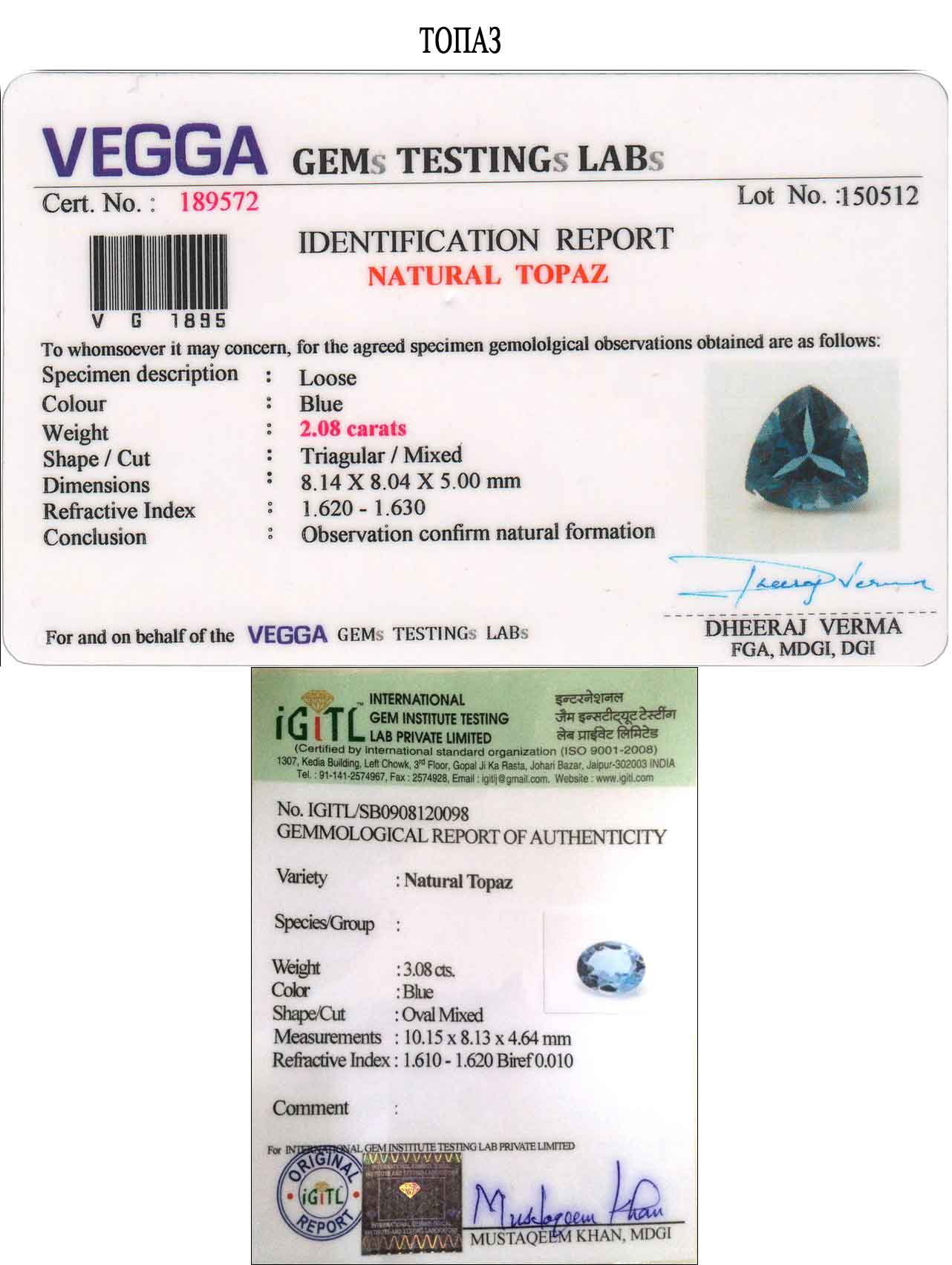 Сертификаты на камни