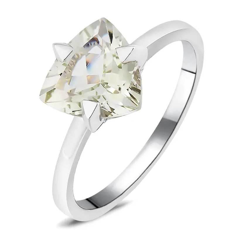 Кольцо с зеленым аметистом из серебра 925 пробы, с родиевым покрытием. Вставка: зеленый аметист.