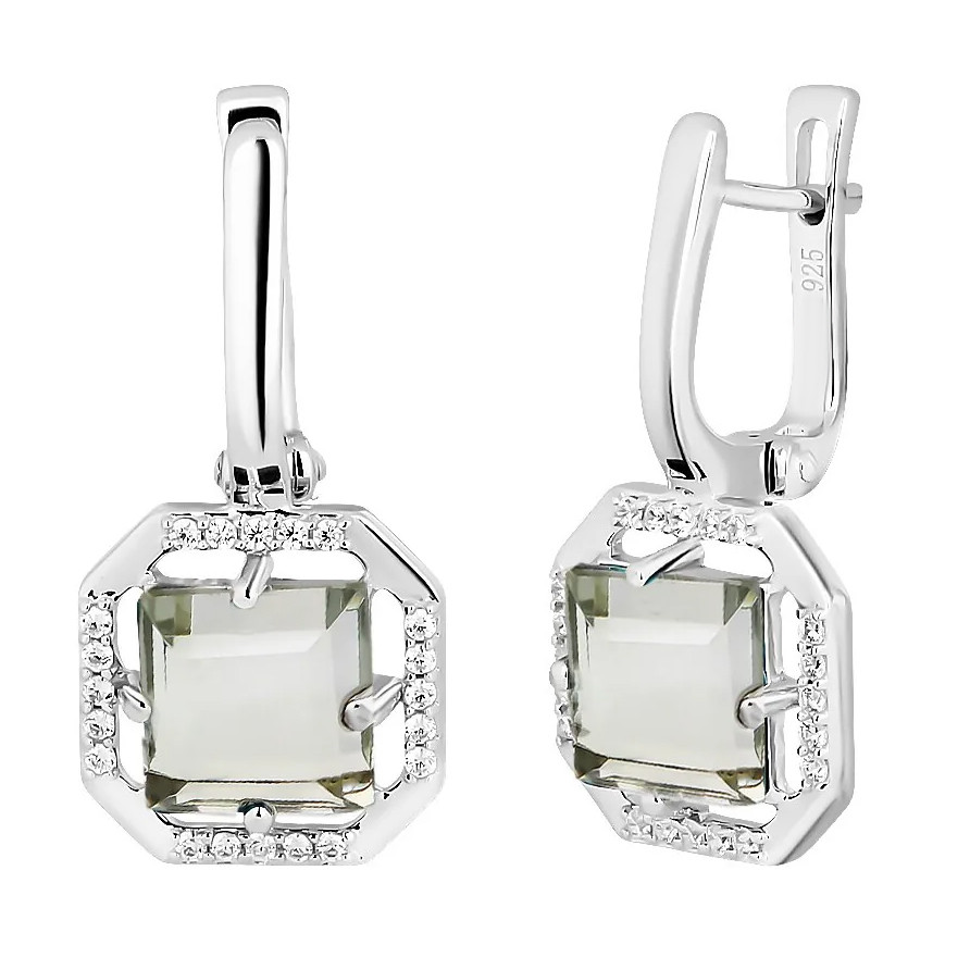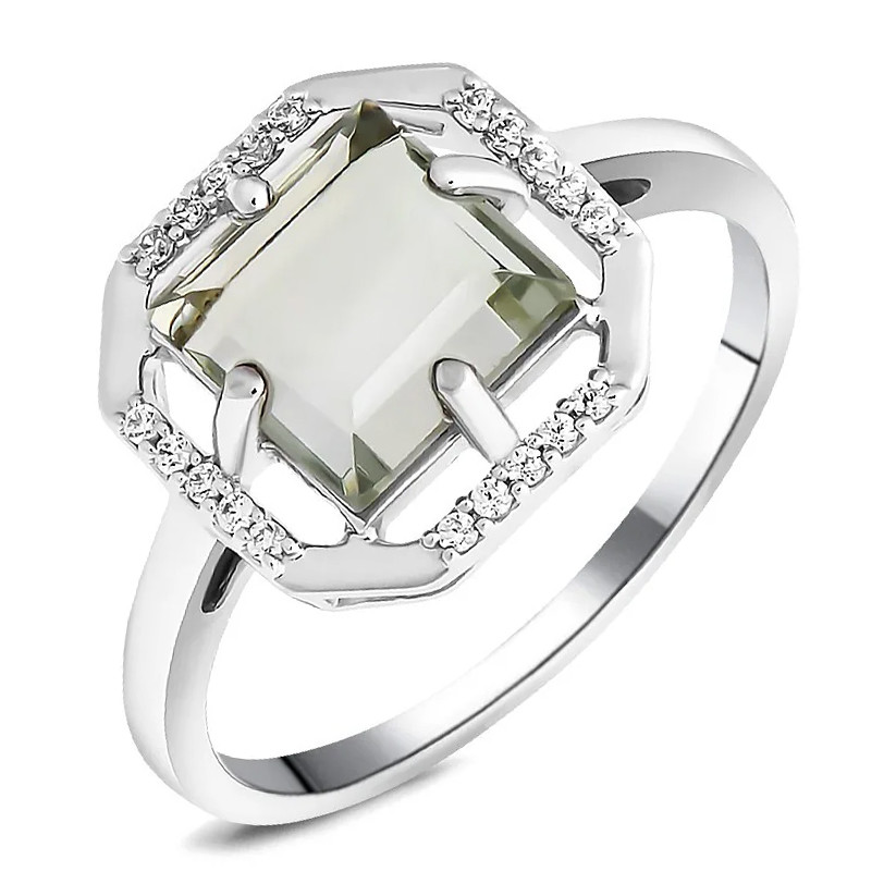 Кольцо с зеленым аметистом из серебра 925 пробы, с родиевым покрытием. Вставка: зеленый аметист, куб. циркон.