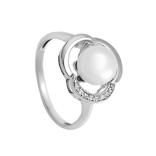 Кольцо с жемчугом из серебра 925 пробы. Вставка: жемчуг, куб. циркон