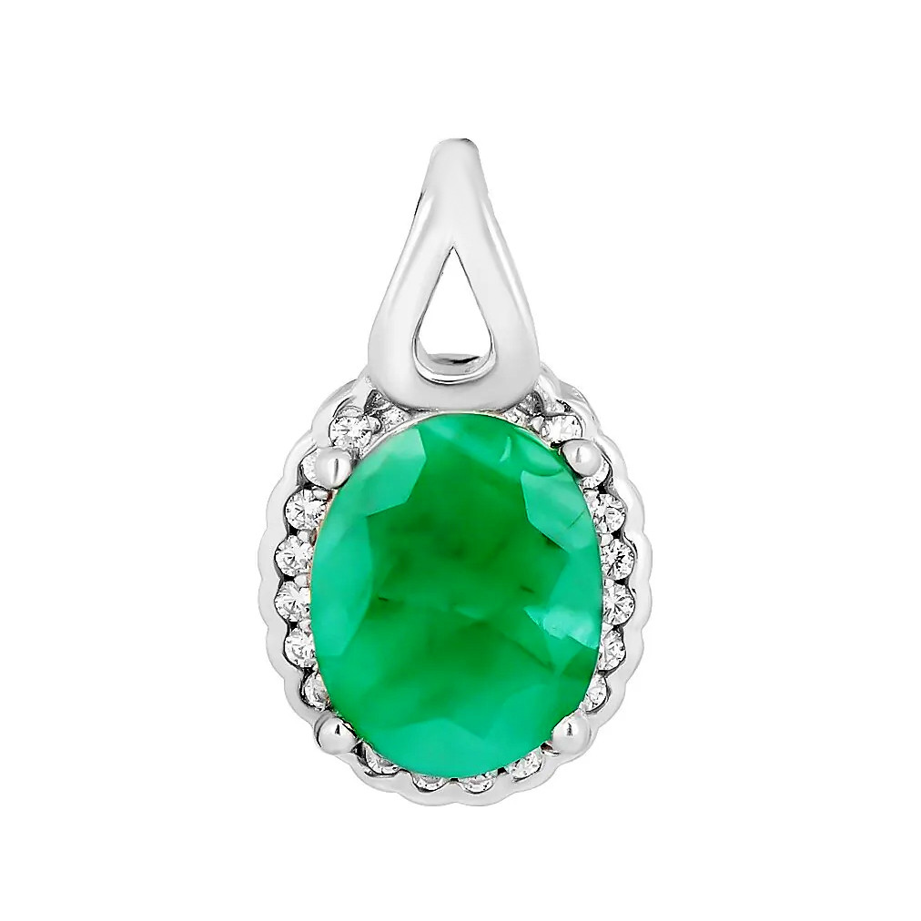 Подвеска с изумрудом из серебра 925 пробы, с родиевым покрытием. Вставка: изумруд берилл, куб. циркон.