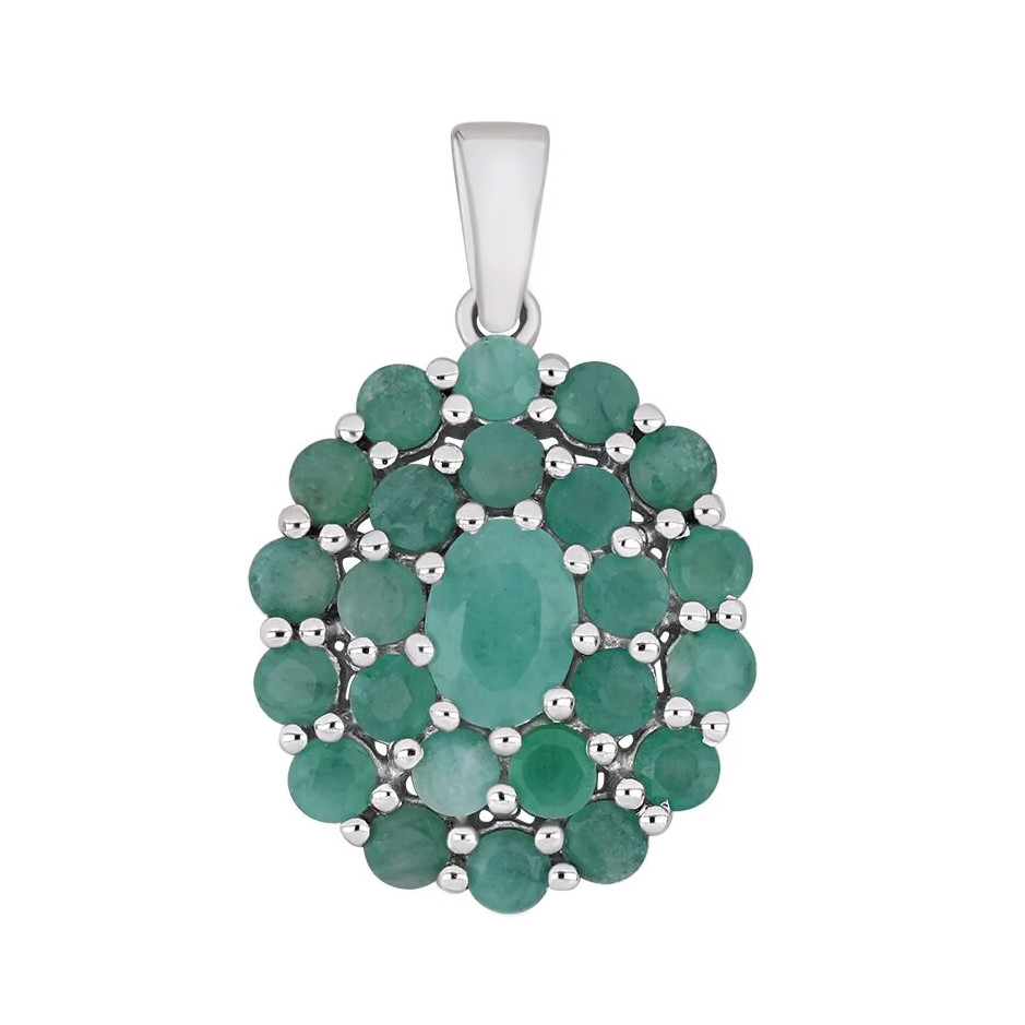 Подвеска с изумрудом из серебра 925 пробы, с родиевым покрытием. Вставка: изумруд берилл.