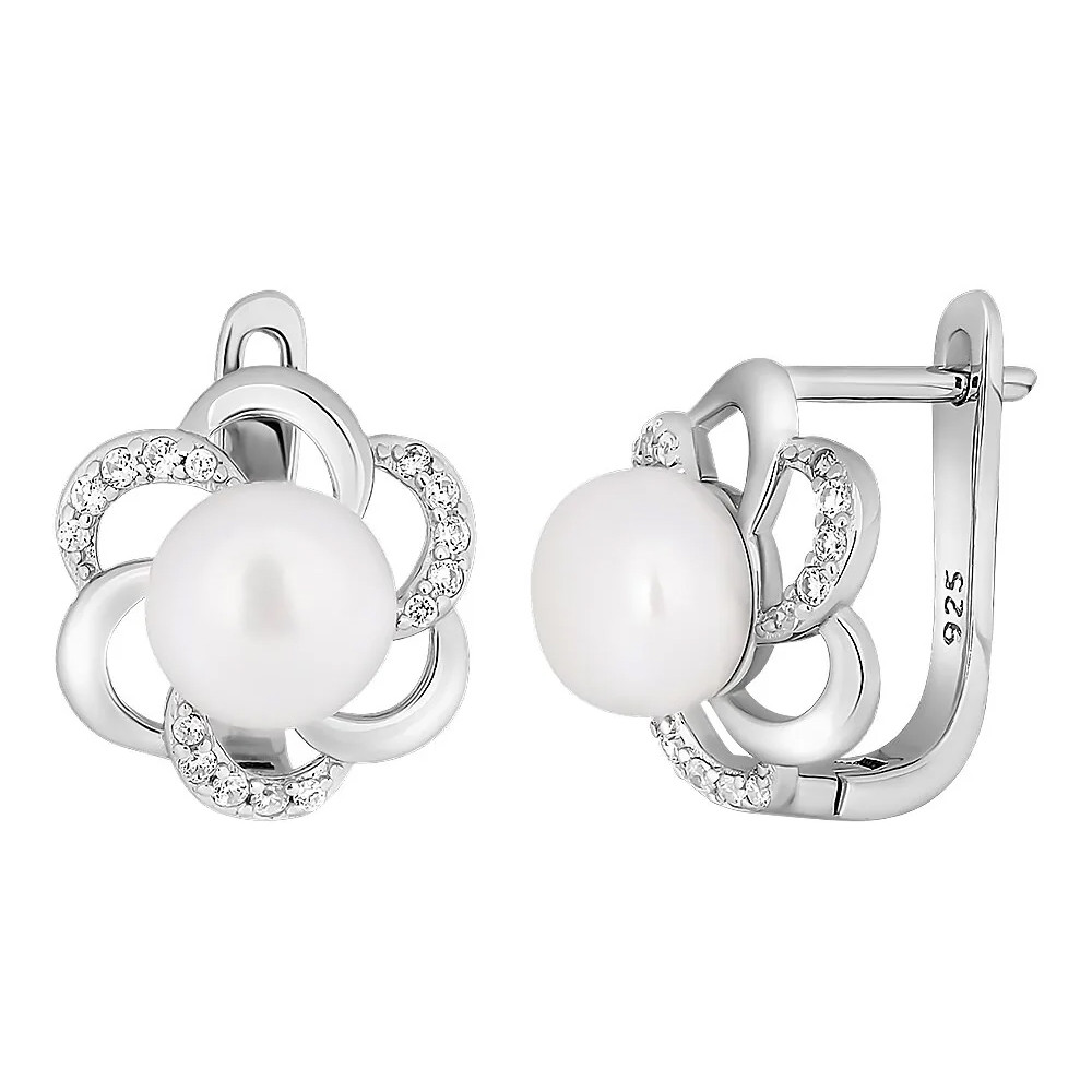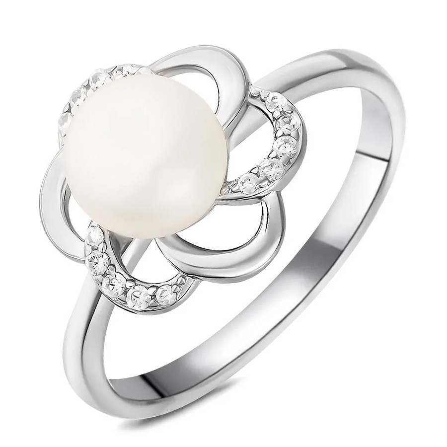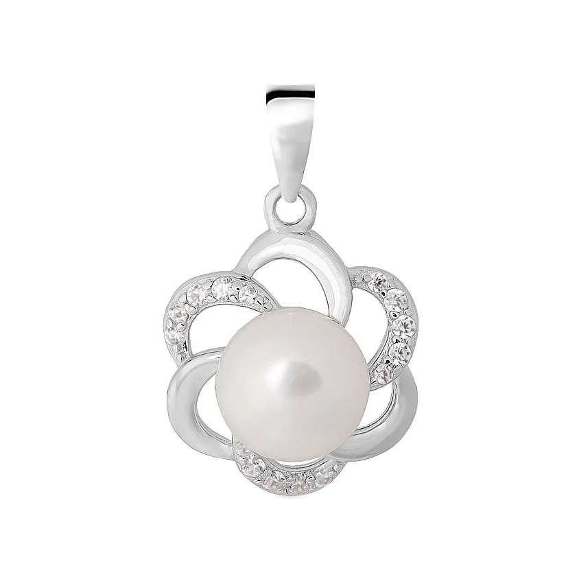 Подвеска с жемчугом из серебра 925 пробы, с родиевым покрытием. Вставка: жемчуг, куб. циркон