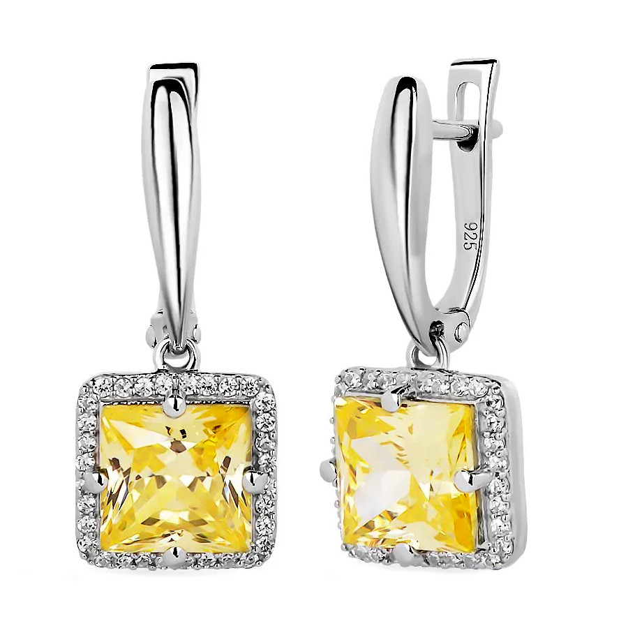 Серьги с цирконом из серебра 925 пробы, с родиевым покрытием. Вставка: крайола циркон.