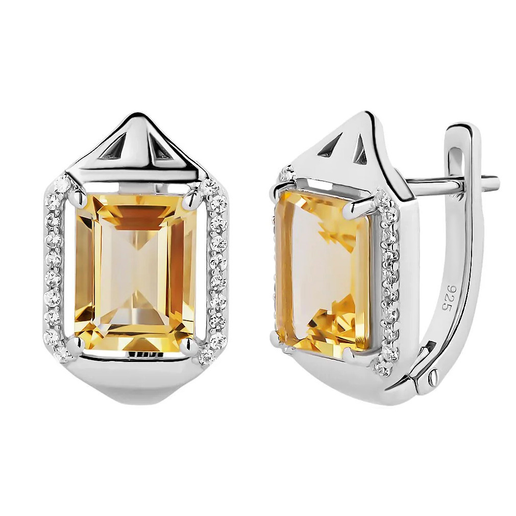 Купить стильные серебряные серьги с цитрином в интернет-магазине Mirserebra925.ru. Серьги с английским замком. Благодаря родиевому покрытию, изделие не темнеет со временем. Все наши изделия апробированы клеймом Пробирной инспекции, поэтому Вы можете быть уверены в качестве серебра, которое мы используем для работы.