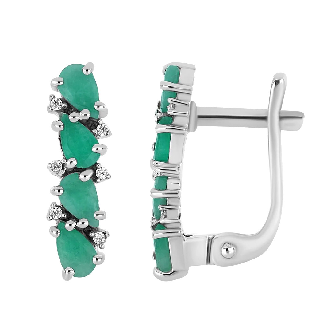 Купить стильные серебряные серьги с изумрудом в интернет-магазине Mirserebra925.ru. Серьги с английским замком. Благодаря родиевому покрытию, изделие не темнеет со временем. Все наши изделия апробированы клеймом Пробирной инспекции, поэтому Вы можете быть уверены в качестве серебра, которое мы используем для работы.