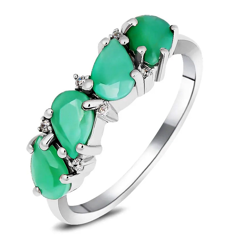 Серьги с изумрудом из серебра 925 пробы, с родиевым покрытием. Вставка: изумруд берилл, куб. циркон.