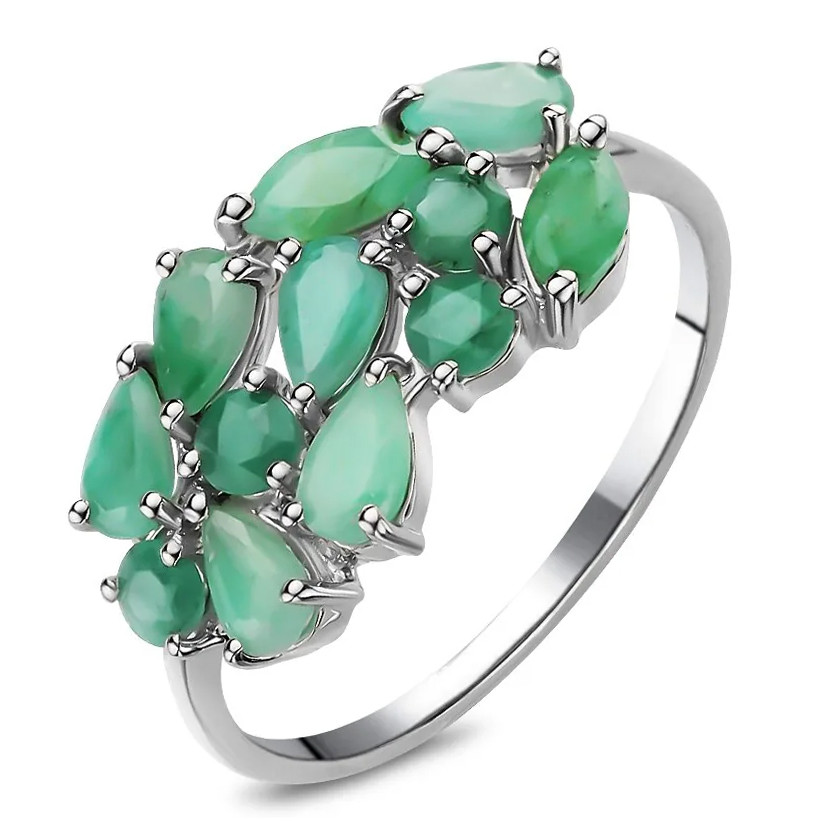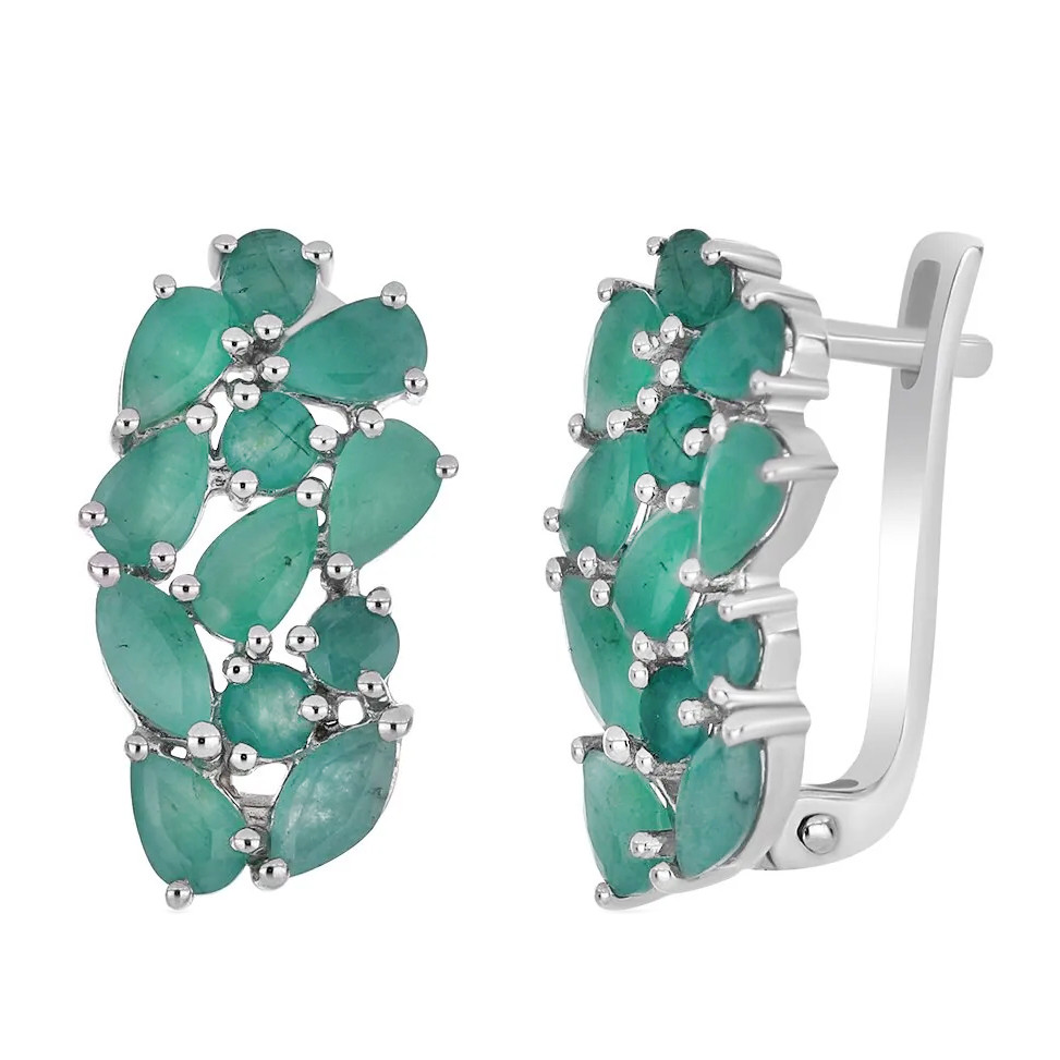 Серьги с изумрудом из серебра 925 пробы, с родиевым покрытием. Вставка: изумруд берилл.