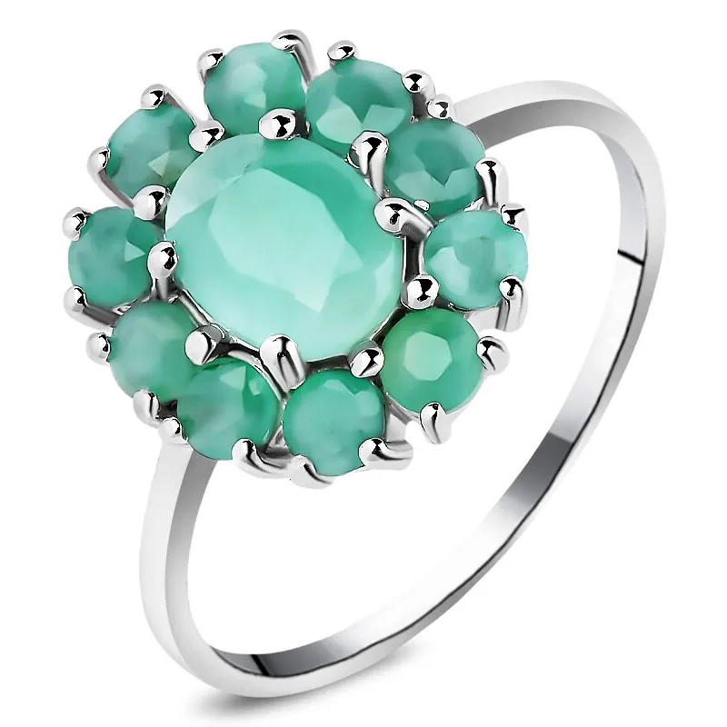 Серьги с изумрудом из серебра 925 пробы, с родиевым покрытием. Вставка: изумруд берилл.