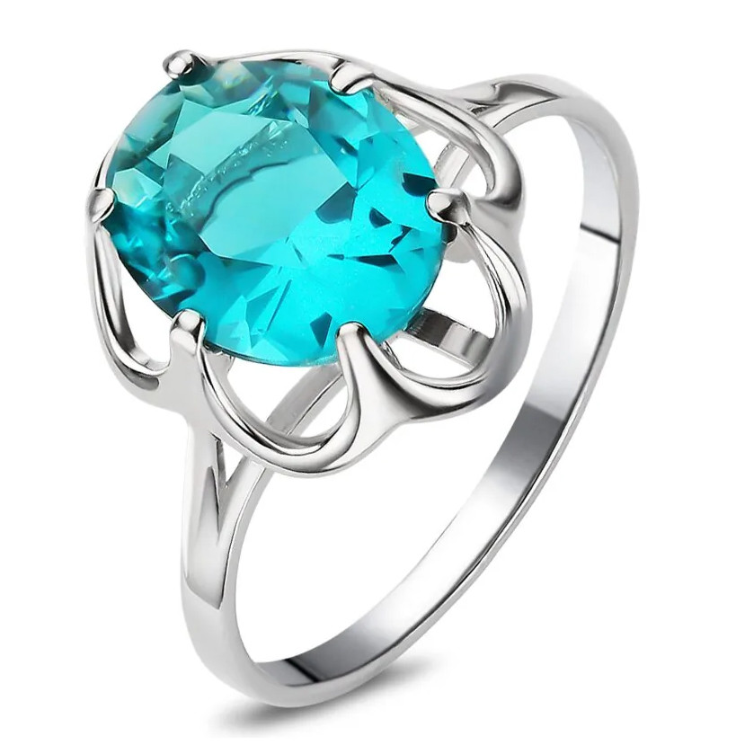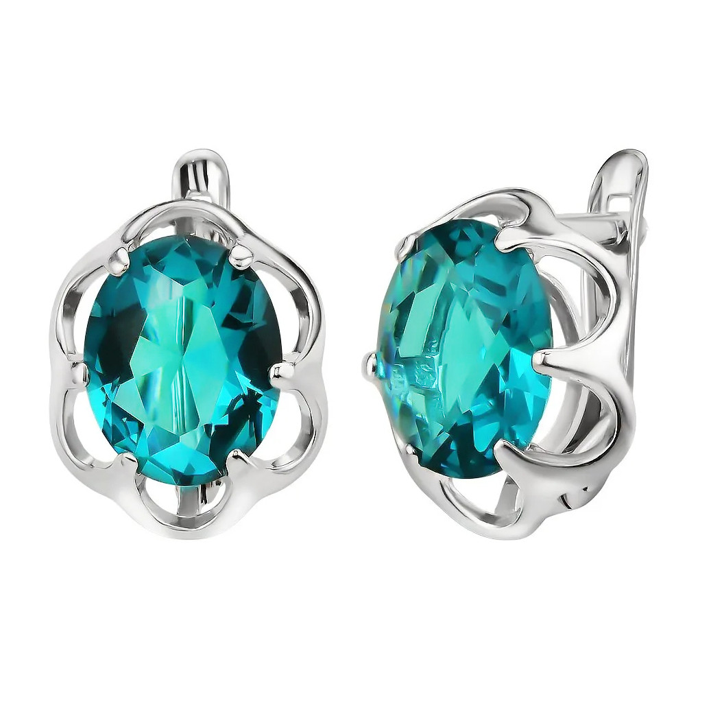 Серьги с кварцем из родированного серебра 925 пробы. Вставка: параиба кварц.