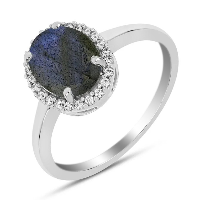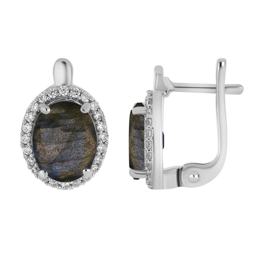 Серьги с лабрадоритом из серебра 925 пробы, с родиевым покрытием. Вставка: лабрадорит, куб. циркон.