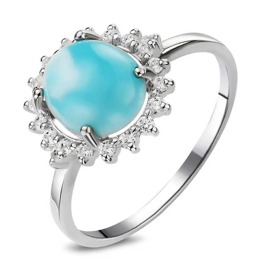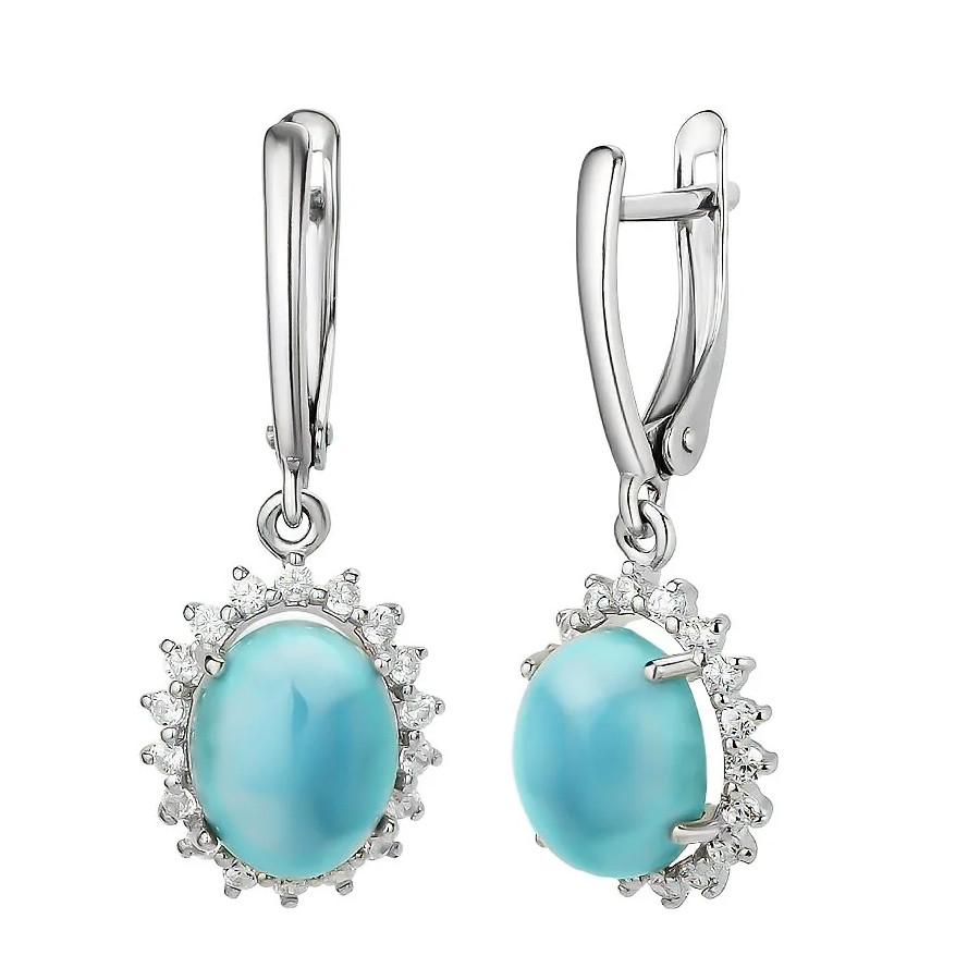 Серьги с ларимаром из серебра 925 пробы, с родиевым покрытием. Вставка: ларимар, куб. циркон.