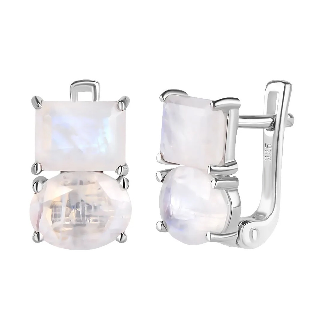 Купить стильные серебряные серьги с лунным камнем в интернет-магазине Mirserebra925.ru. Серьги с английским замком. Яркое и лёгкое украшение. Оригинальный дизайн и аккуратное исполнение. Благодаря родиевому покрытию, изделие не темнеет со временем. Все наши изделия апробированы клеймом Пробирной инспекции, поэтому Вы можете быть уверены в качестве серебра, которое мы используем для работы.