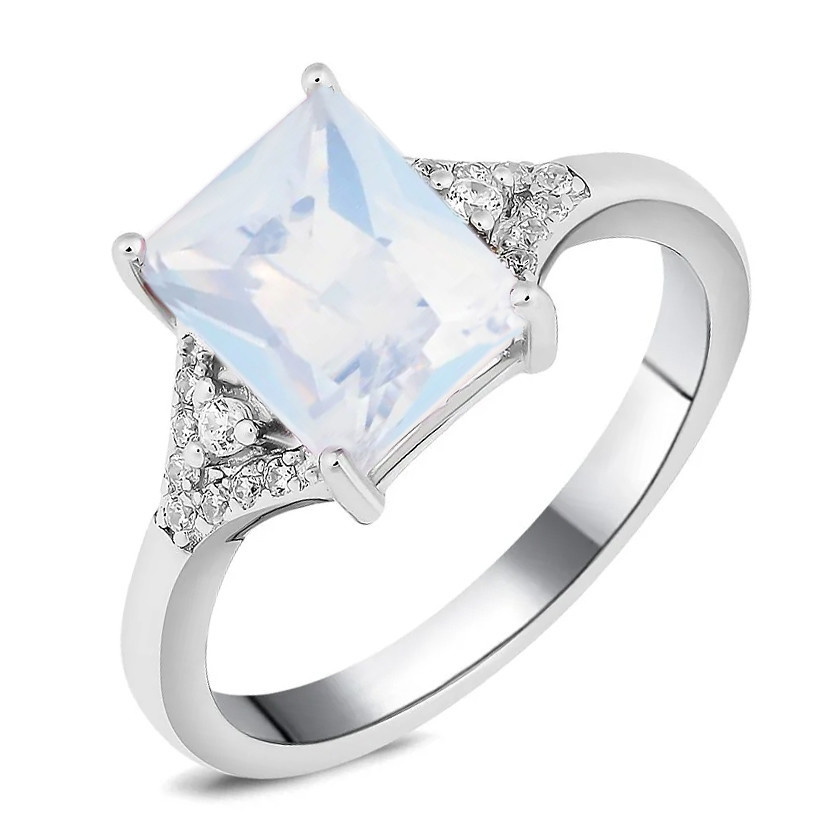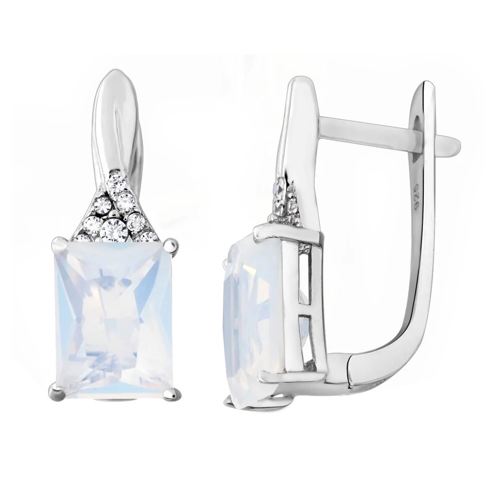Серьги с лунным камнем из серебра 925 пробы, с родиевым покрытием. Вставка: лунный камень, куб. циркон.