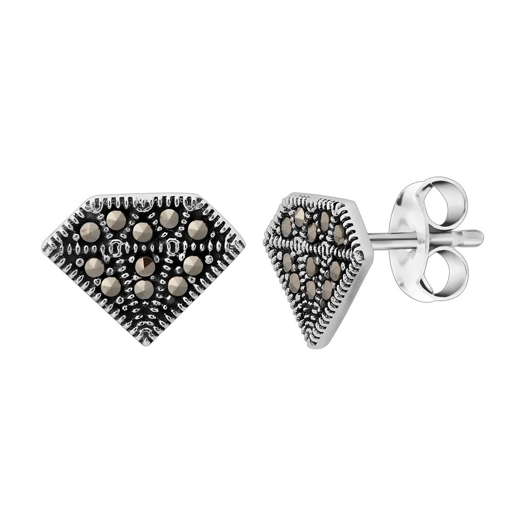 Купить стильные серебряные серьги с марказитом в интернет-магазине Mirserebra925.ru. Все наши изделия апробированы клеймом Пробирной инспекции, поэтому Вы можете быть уверены в качестве серебра, которое мы используем для работы.