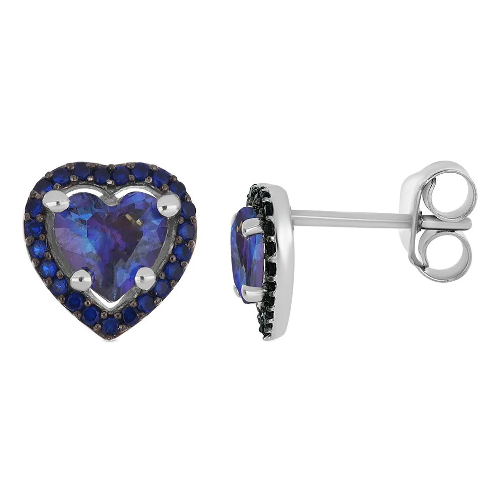 Серьги с мистик кварцем из серебра 925 пробы, с родиевым покрытием. Вставка: мистик кварц синий, наносапфир.