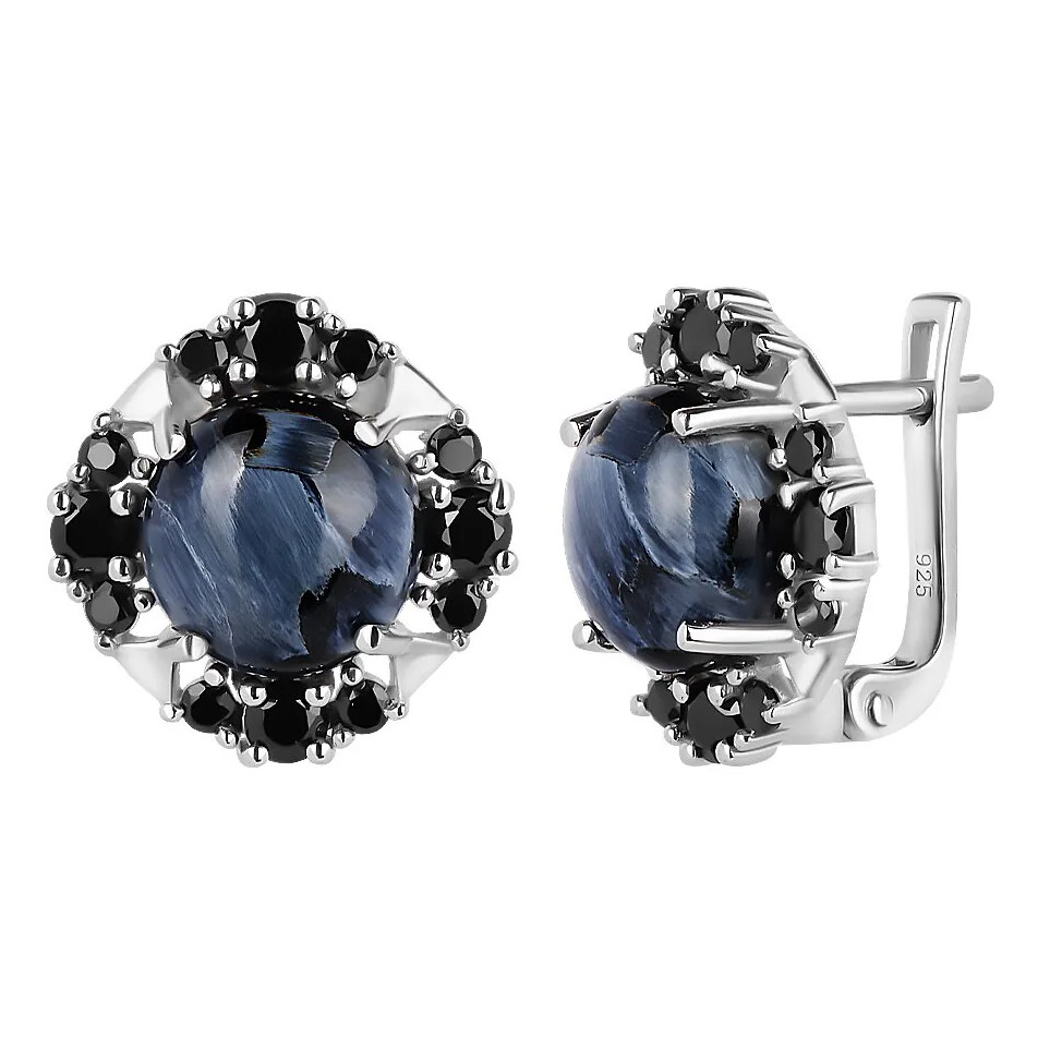 Купить стильные серебряные серьги с питерсит в интернет-магазине Mirserebra925.ru. Серьги с английским замком. Благодаря родиевому покрытию, изделие не темнеет со временем. Все наши изделия апробированы клеймом Пробирной инспекции, поэтому Вы можете быть уверены в качестве серебра, которое мы используем для работы.