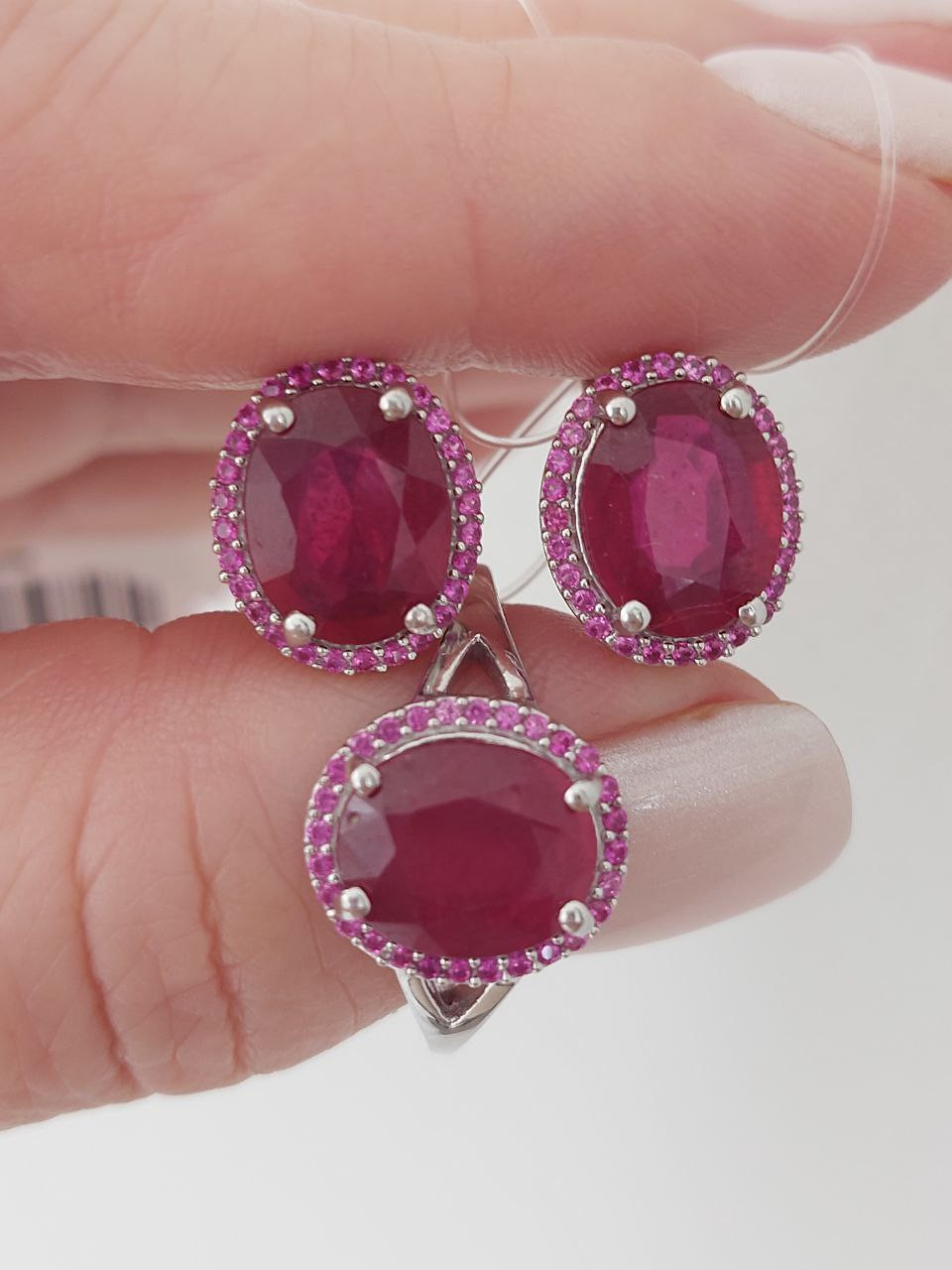 Серьги 2 рубин овал 8х10 мм/7.17 ct из серебра Арт: 658540