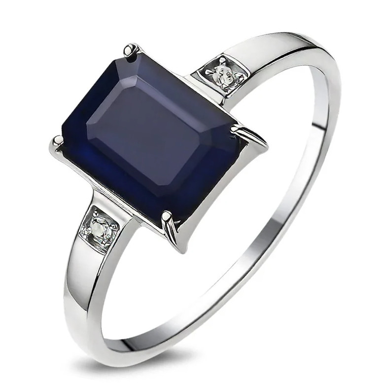 Серьги с сапфиром из серебра 925 пробы, с родиевым покрытием. Вставка: 2 сапфир корунд октагон 7х9 мм/4.76 ct, куб. циркон.
