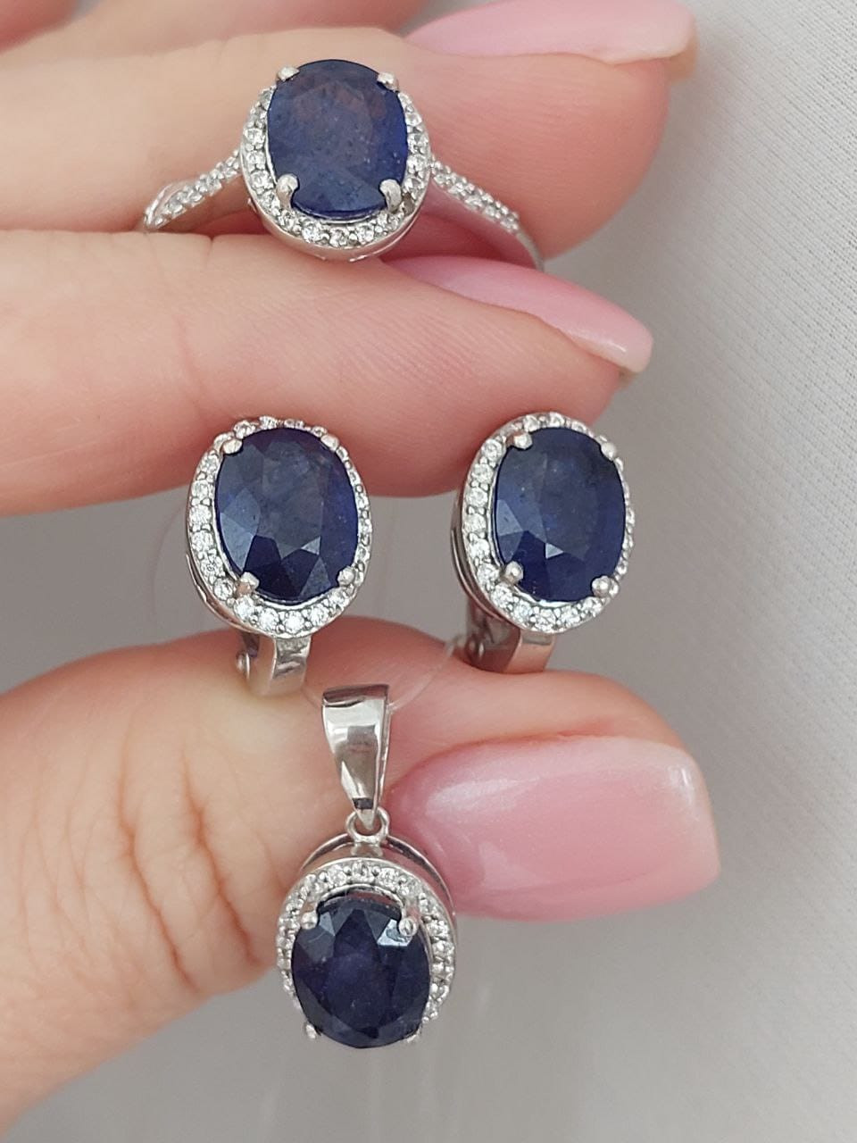 Серьги с сапфиром из серебра 925 пробы, с родиевым покрытием. Вставка: сапфир корунд, куб. циркон