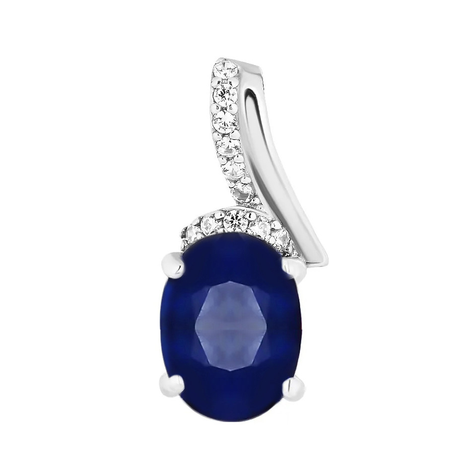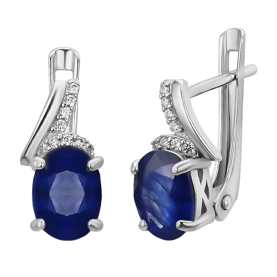 Серьги с сапфиром из серебра 925 пробы, с родиевым покрытием. Вставка: сапфир корунд, куб. циркон.