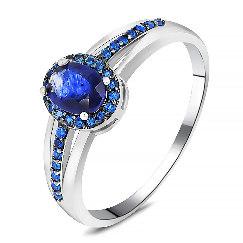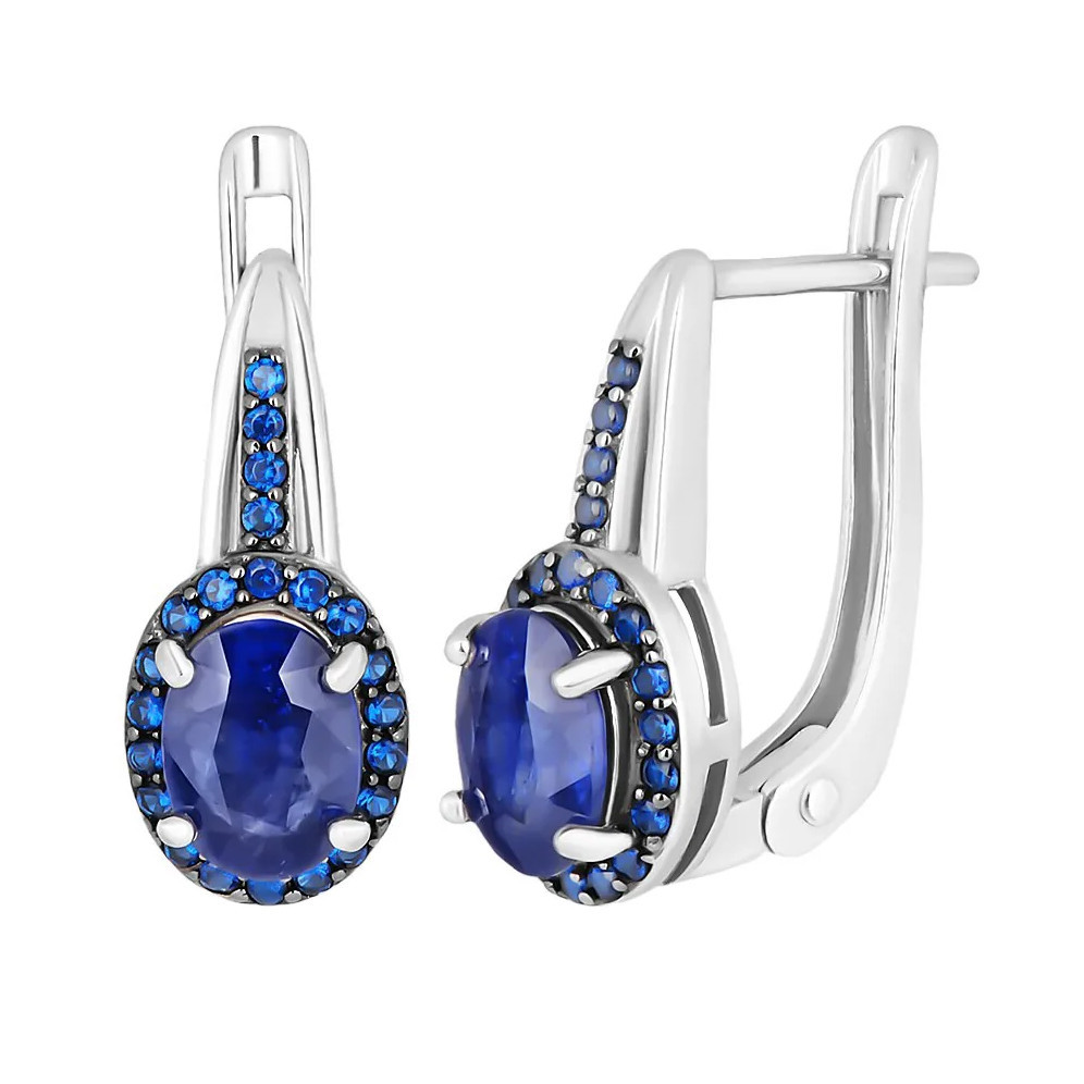 Серьги с сапфиром из серебра 925 пробы, с родиевым покрытием. Вставка: сапфир корунд, наносапфир.