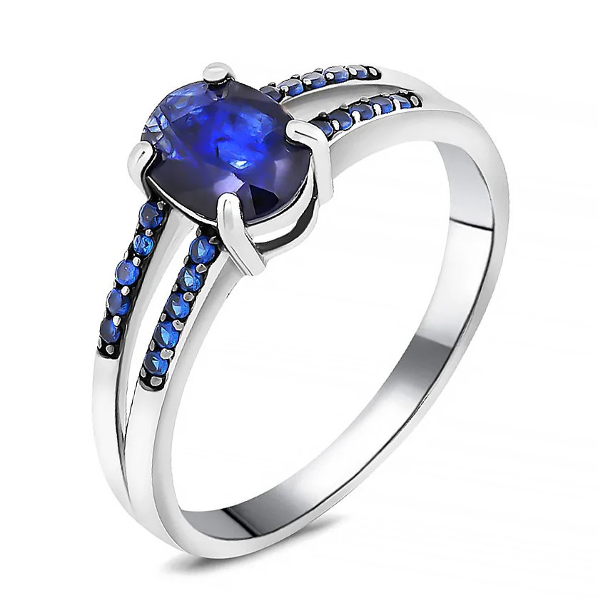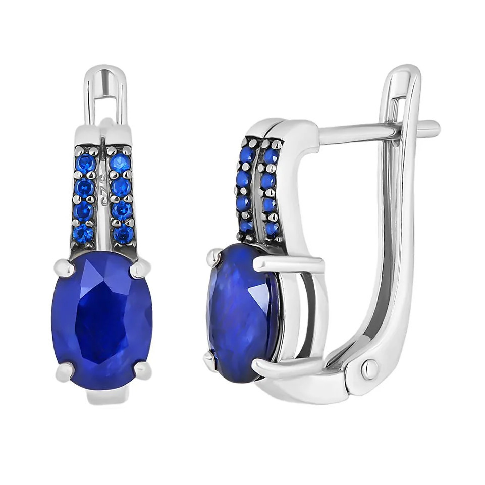 Серьги с сапфиром из серебра 925 пробы, с родиевым покрытием. Вставка: сапфир корунд, наносапфир.