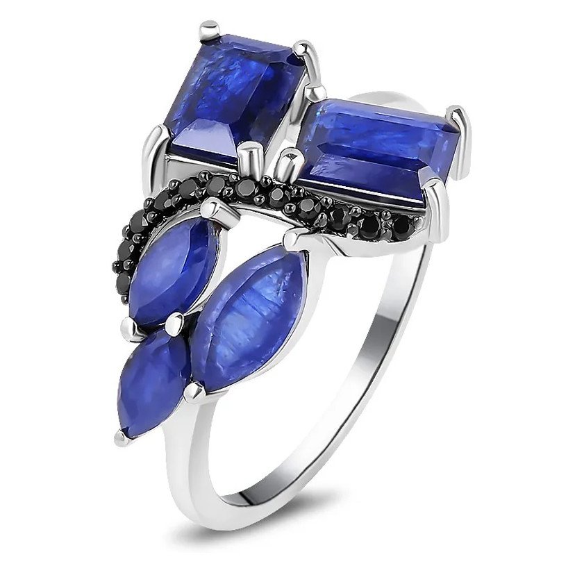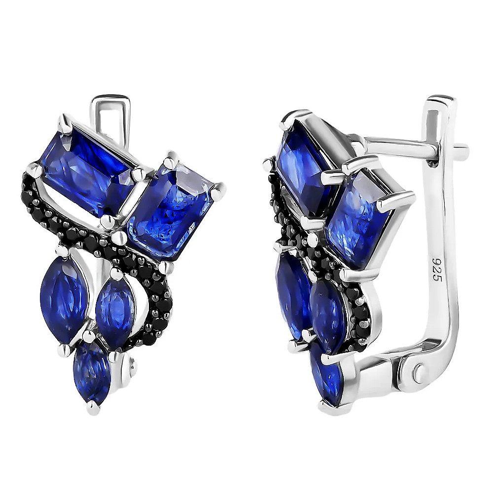 Серьги с сапфиром из серебра 925 пробы, с родиевым покрытием. Вставка: сапфир корунд, шпинель.