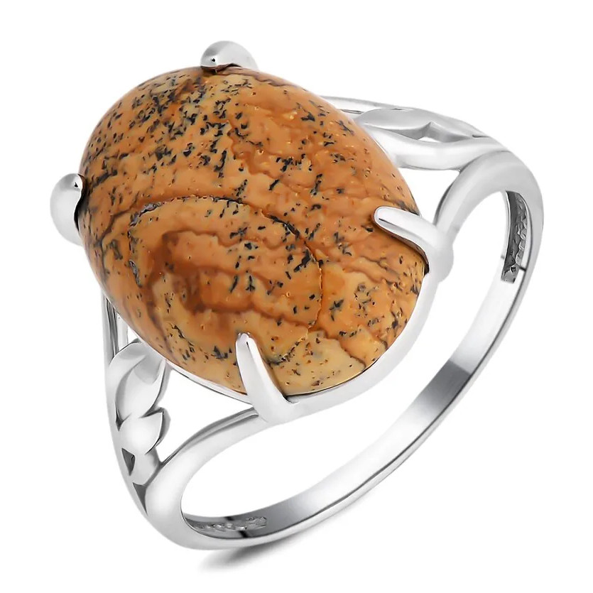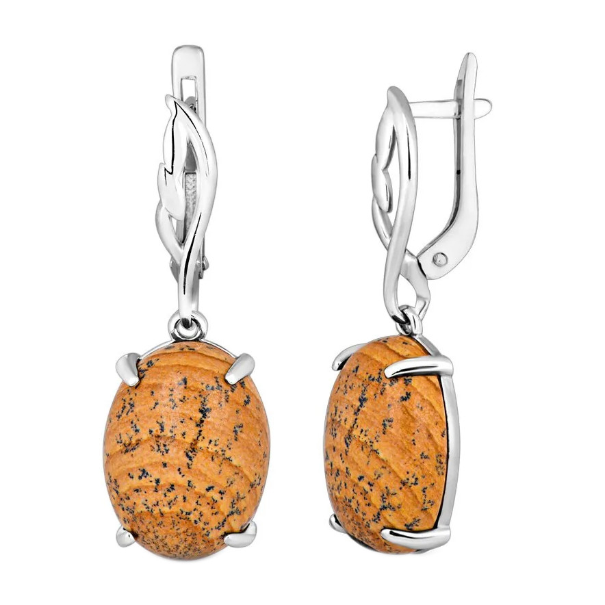 Серьги с яшмой из серебра 925 пробы, с родиевым покрытием. Вставка: яшма